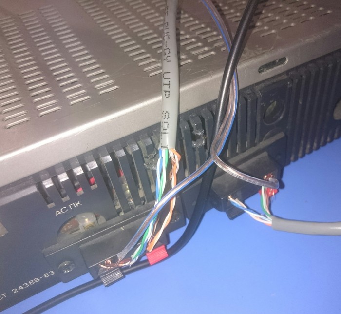 Подключенная витой парой к 4 динамикам и пассивному сабвуферу.