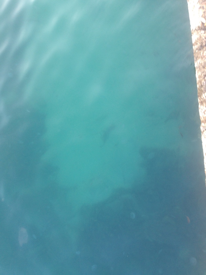 Когда я залез на пирс и пошел к воде, я увидел косяк рыбок на дне и камни, подумал сначала что там не глубоко, но когда нырнул оказалось, что до дна три метра и все было обманчиво.