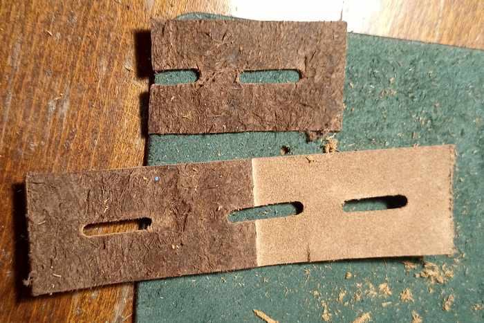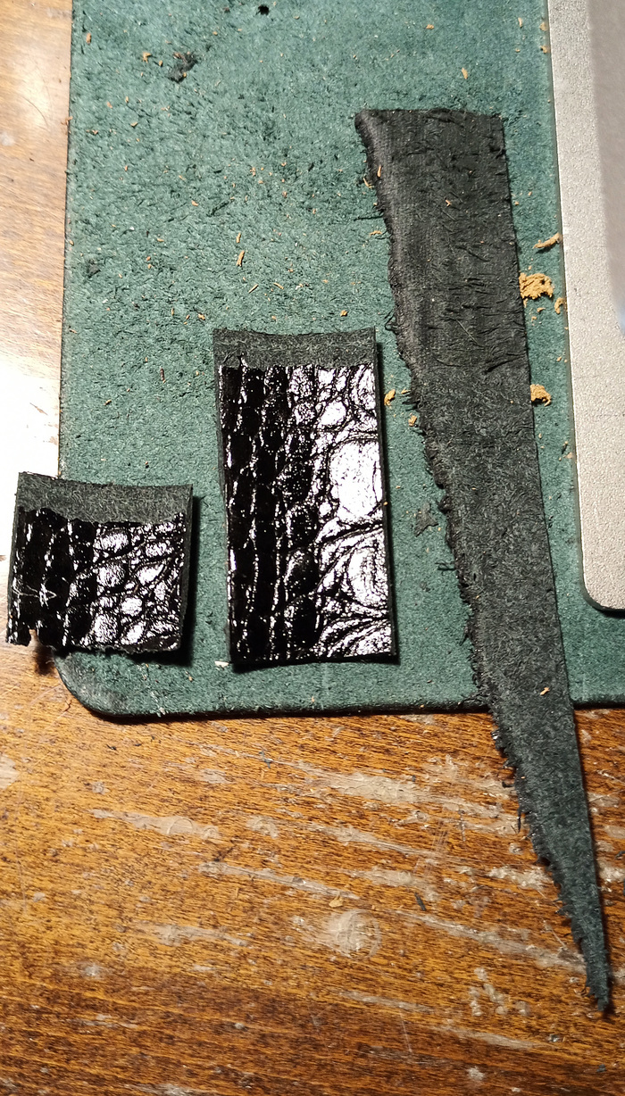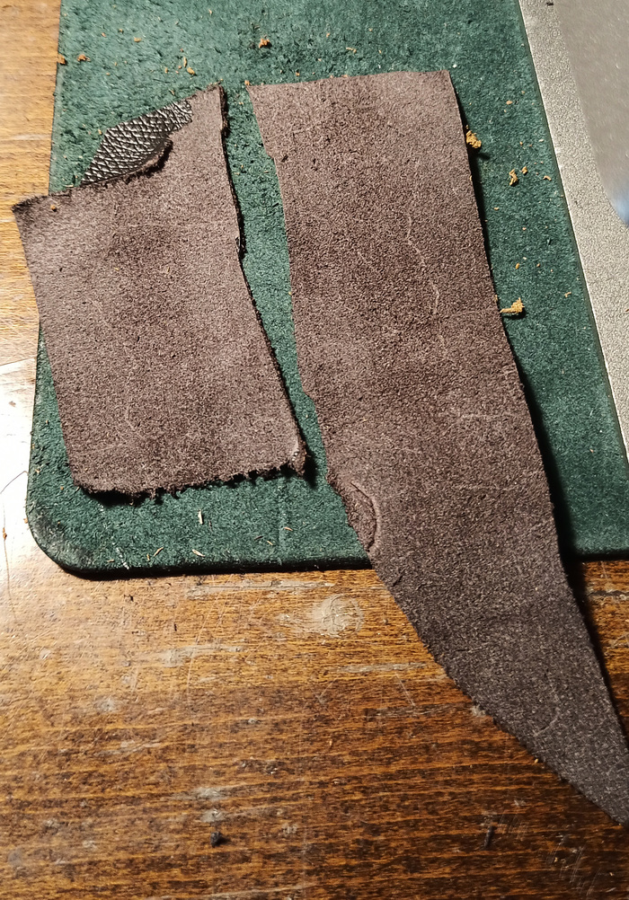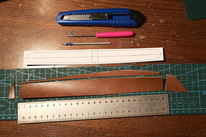 Склеиваю кожу, вырезаю заготовки. Боковинки, там где они будут пришиваться, сшерфовал наполовину.