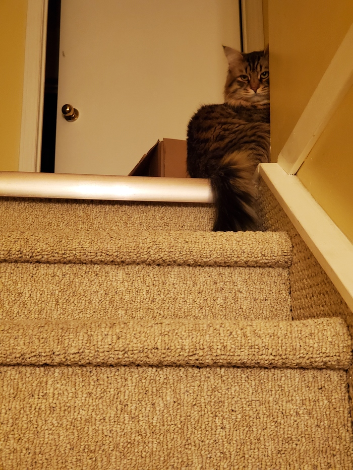 Мышь оказалась за стиральной машинкой. Я её толком не увидела. Так, мелькнуло что-то тёмное и все. Мы с мужем сели на пол, рядом с комнатой для стирки. И стали ждать. Мимо то и дело проходили коты и спрашивали, чего это мы тут делаем.