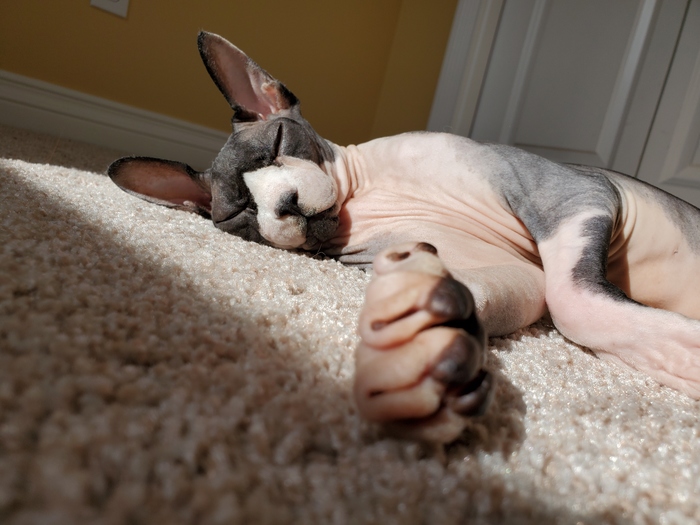 А вот лысым котикам хорошооооо. Наконец-то можно не спать под одеялом. Псих!