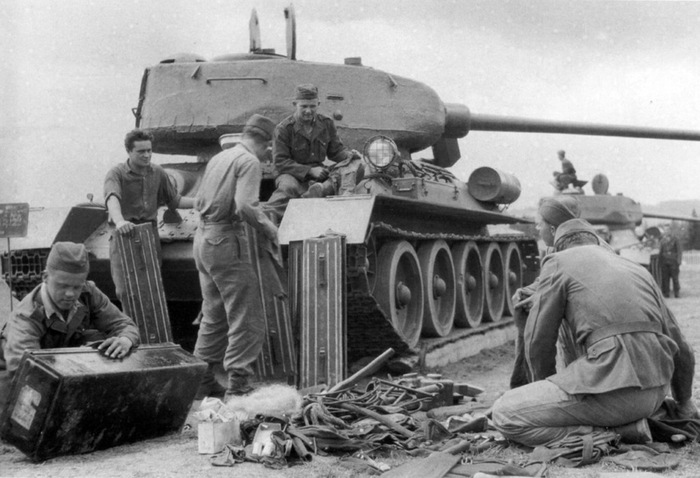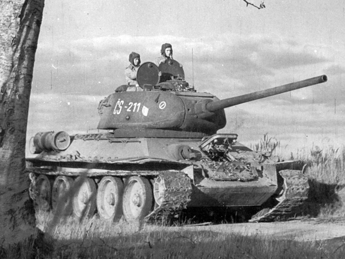 Чехословацкий Т-34–85 на съёмках фильма, 60-е годы. Танк имеет фару Notek.