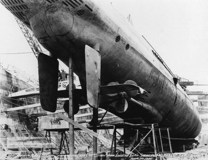 Капитулировавшая немецкая подводная лодка U-858 (тип IX-C/40) на верфи в Портсмуте (штат Нью-Гемпшир).