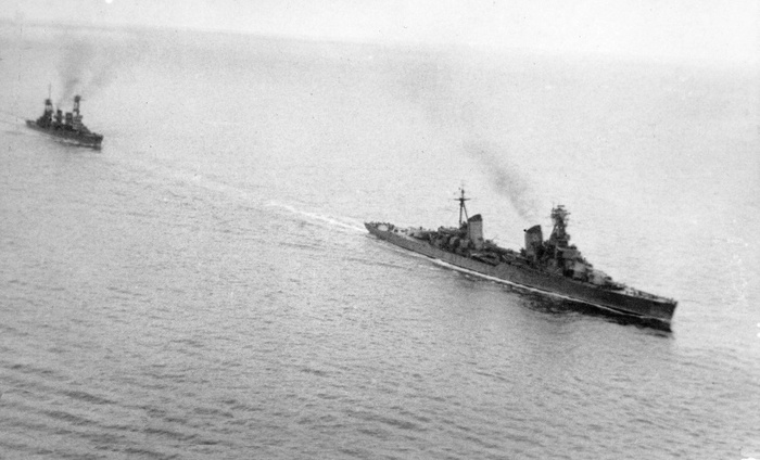 Советские крейсеры «Ворошилов» и «Красный Кавказ» в кильватерном строю.