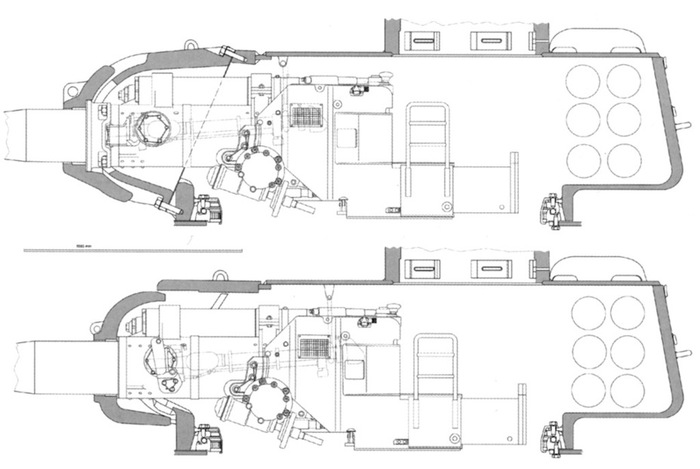 Первый (сверху) и второй (снизу) варианты установки 100-мм пушки в башню Т-34–85.