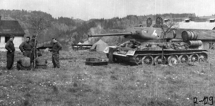 Танки Т-34–85 по окончанию Второй мировой войны оказались едва ли не самым массовым типом бронетехники чехословацкой армии. Первые такие машины чехословацкий корпус получил в начале 1945 года, всего же во время войны ему было передано до 130 танков этого типа. Они принимали участие в освобождении Праги, а позже стали основной бронетанковых сил послевоенной чехословацкой армии. После войны поставки продолжались. На фотографиях тех лет встречаются советские машины, явно выпущенные уже после 9 мая 1945 года. Т-34–85 стали первыми танками чехословацкой армии, получившими на башнях знаменитые трёхцветные «кокарды».