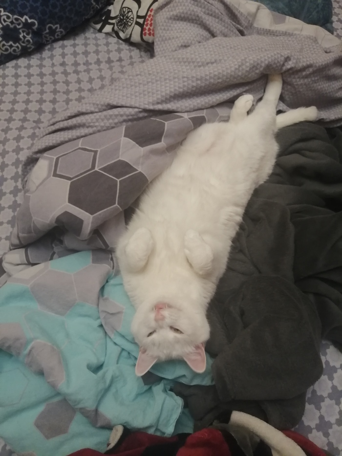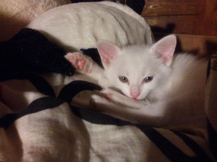 Появилась эта мелочь внезапно и поменяла мою жизнь к лучшему кардинально. Стоял 2015 год, в деревне разродилась кошка и в выводке был маааленький белый комочек. Сердце дрогнуло и, через 4 недели, это чудо поселилось у меня в комнате. В вольере оно сидеть не захотело и ночью перебралось ко мне под одеяло.
