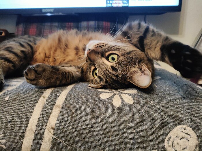 Теперь наш старейшина Урчи. Ему 10 лет. Он степенный, невозмутимый, громко урчащий Кот. Был вот таким маленьким милым котенком