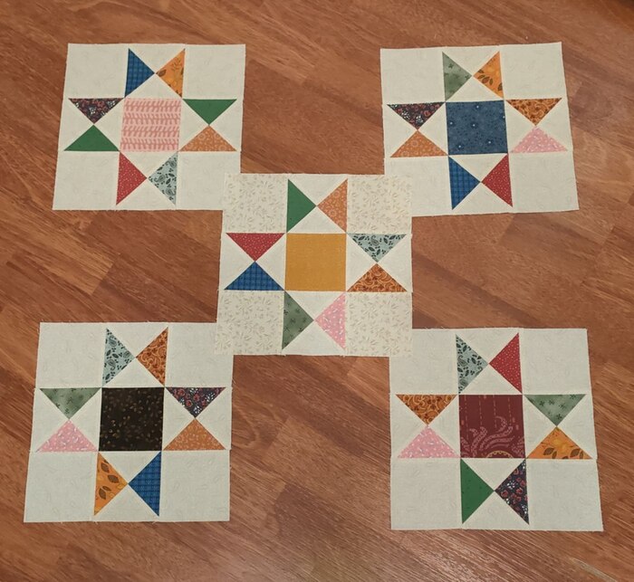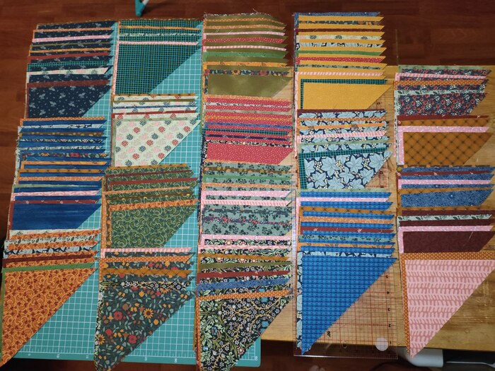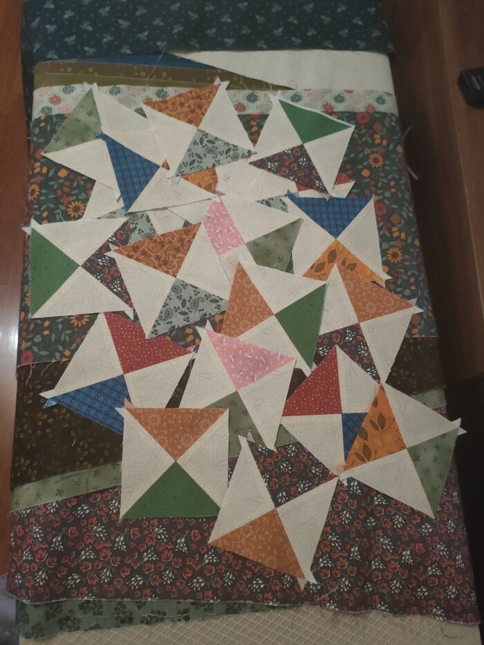 Сейчас у меня готова часть серединки из блоков "Песочные часы". Вот так они выглядели, когда только сшила: