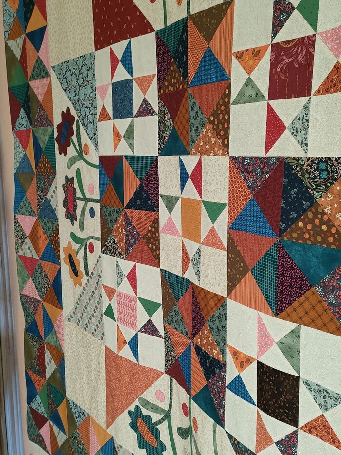 На этом самая творческая часть работы закончена. Теперь дело техники - выкроить цветные квадраты, собрать их в квадраты из 4-х цветов и собрать весь квилт)