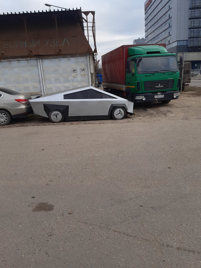 Еду тут утречком по прекрасному городу Химки, погруженный в мысли о тяжести бытия, и тут краем глаза замечаю нечто прекрасное и необычное, чудо инженерной мысли под названием Tesla Cybertruck, каким то образом оказавшееся под забором в далёкой и холодной России. Вот такое.