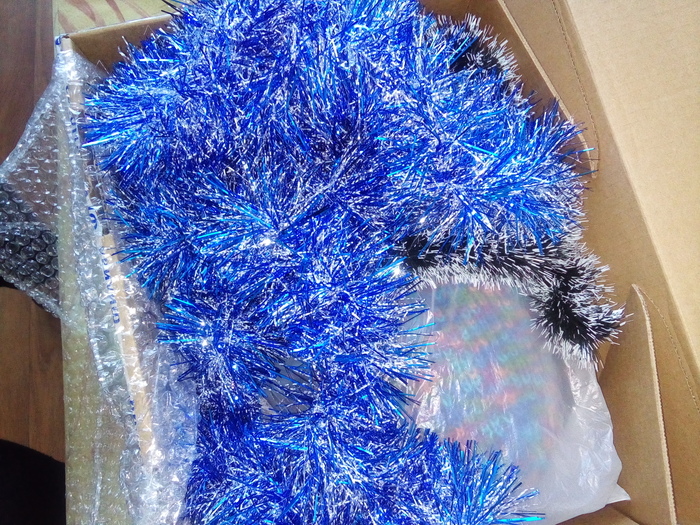 Открываем,первым делом-праздничная мишура.