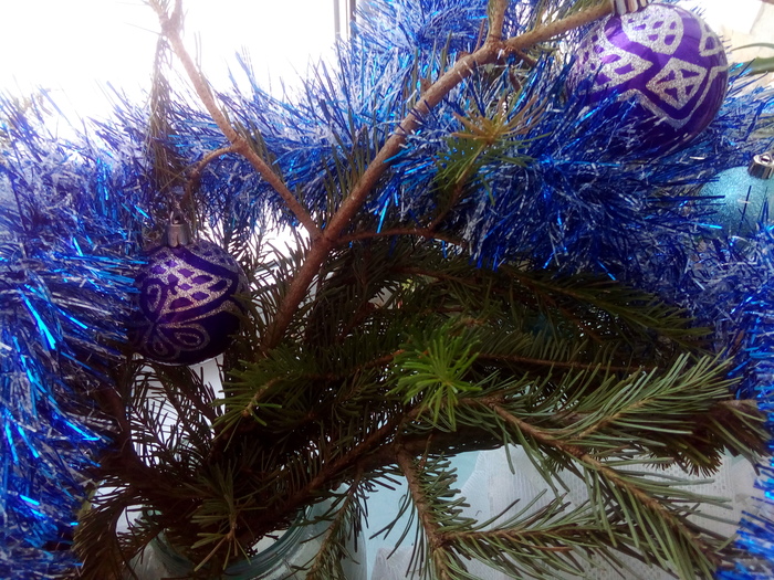 игрушки и мишура отправились на елку....ну,букет елки:)