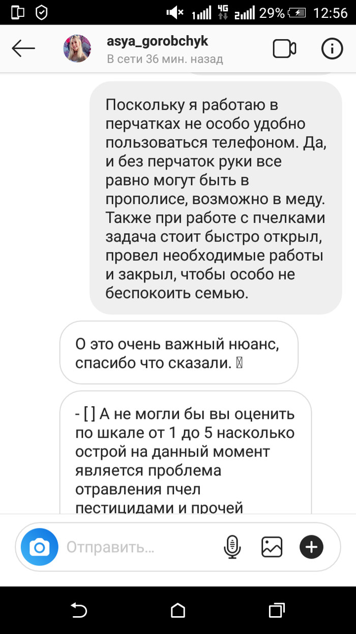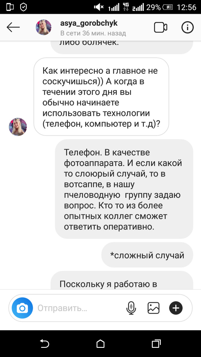 И мне в insta постучалась девчуля. Начала за здравие, как говорится… первые вопросы были из серии: любите ли пчел и т.п.