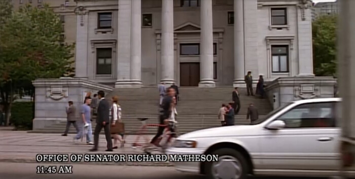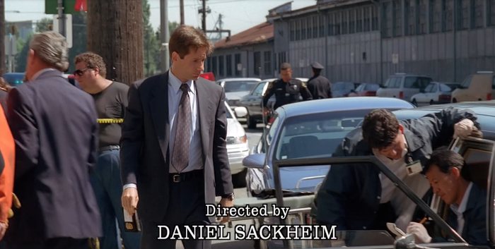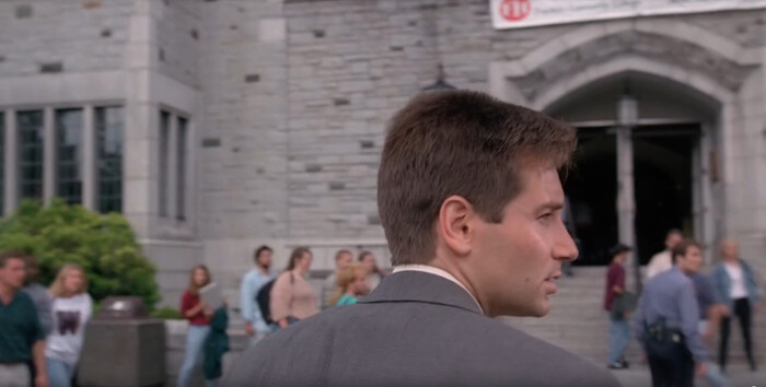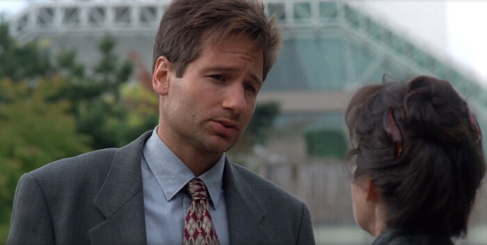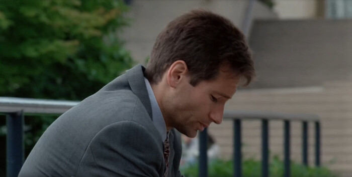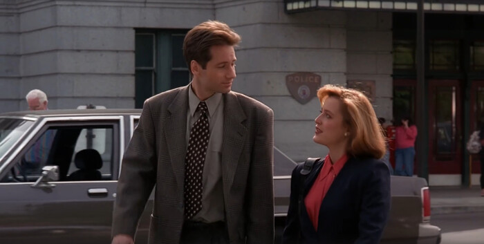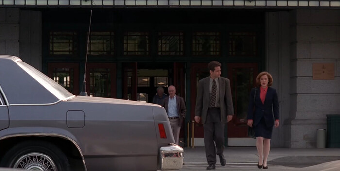 В серии Скалли выходит из офиса компании сдающей автомобили в аренду.