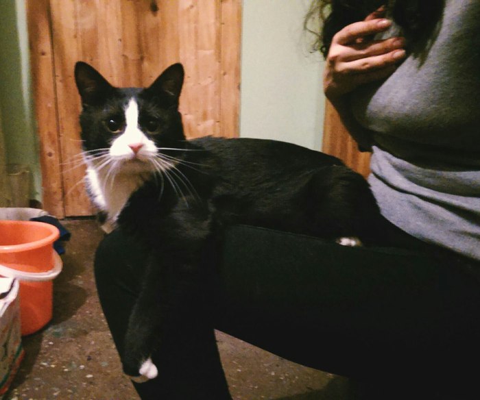Ищет дом котик! Подкинули в подъезд, на объявления никто не откликнулся. В ветеринарной клинике определили возраст примерно года 2-3. Сейчас живет на лестничной клетке между нашей квартирой и общей лестницей, благо есть дверь. Сдали биохимию и клинический анализ, здоровье хорошее. Кастрирован. Очень ласковый, лижет руки, трется брылечками, встречает с работы. Умный, ходит в туалет, когда мы приходим с работы. Очень любит внимание, ревнивый, когда чувствует что от рук пахнет другими котами. Обожает играть с веревочкой и сидеть на руках. С туалетом сложновато, ходит то в черепку, то на пол, мы думаем, что так он помечает что территория его, да и лестничный пролет наверно не располагает к нормальному туалету. Долго держать не можем, соседи с нашего крыла вообще не любят животных, даже запах корма не переносят… Себе совсем взять не можем, уже 3 подобранных. Его очень жалко, на улице совсем пропадет!!!! Присмотритесь, может кто-то ищет себе такого друга.
