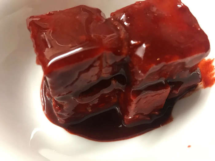 Ферментированный тофу в данном случае можно читать как вонючий тофу. В моем случае меня спасало то, что вонючий тофу мариновался в красном соусе, что слегка перебивало аромат. Простите, что немного затянул, но не хотелось растягивать текст на два поста.