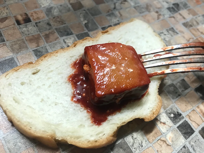 Так как мне пришелся по вкусу маленький кусочек, я навалил себе риса с мясом и решил все это дело заправить ферментированным тофу. Ну как вы поняли жрать это было невозможно. Превозмогая огромное количество соли во рту, а так же боль и слезы я продолжал есть свой ужин. Надо съесть, так как жена не простит, если я выкину целую тарелку.