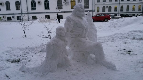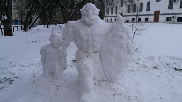 Как то мы с другом уже делали снеговика http://pikabu.ru/story/v_otvet_3840776, в этот раз решили сделать, что то поистине фееричное, и вот, ОН, лучик света, в сером от смога Готэме, тот кто стоит на страже справедливости, единственный, кто сможет остановить эту дождливую зиму