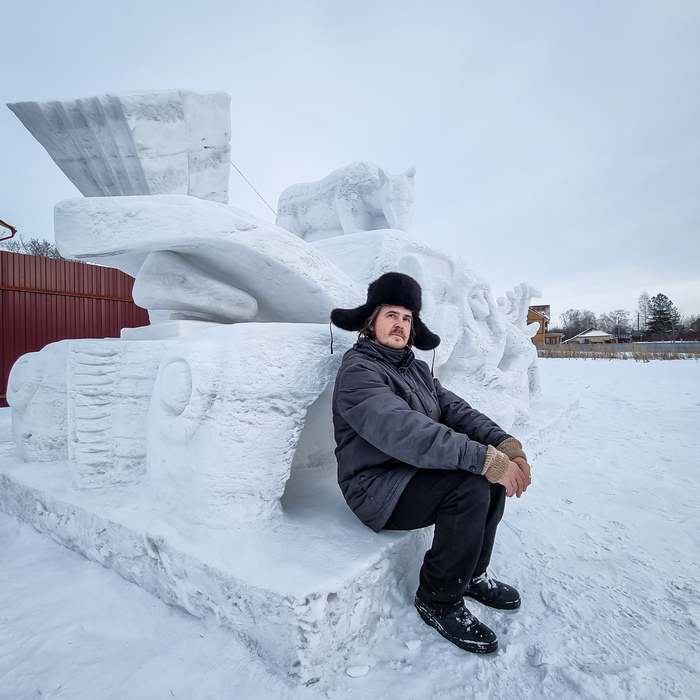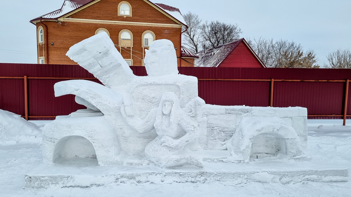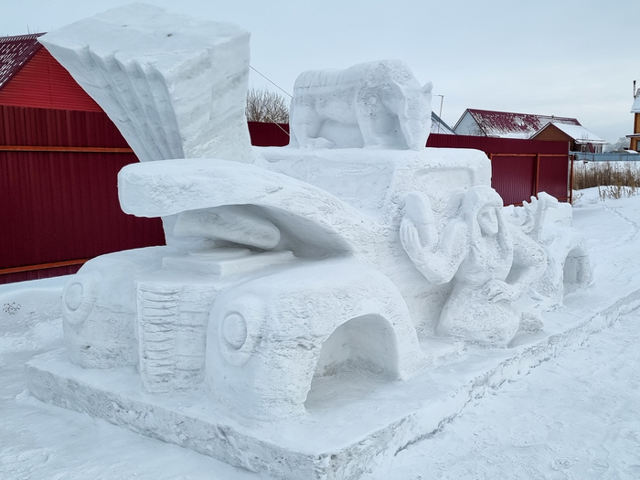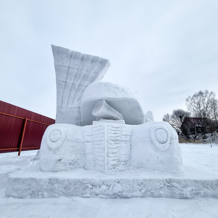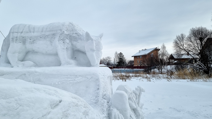 Новая скульптура из снега: "Борьба за шайбу"