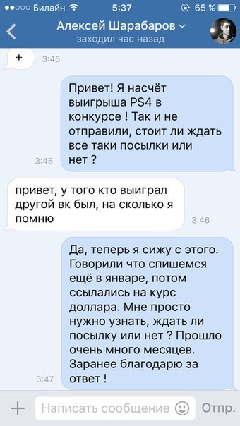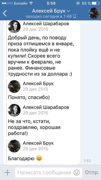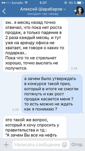Да и я тоже решил написать Алексею, представившись победителем. Он особо и не смутился, даже не стал проверять толком, потому что зачем ? Всё равно ведь приза никакого нет (прикрепляю свои скриншоты). Заодно прикрепляю и другие отзывы о данном сервисе, которые взяты из комментариев в их группе.