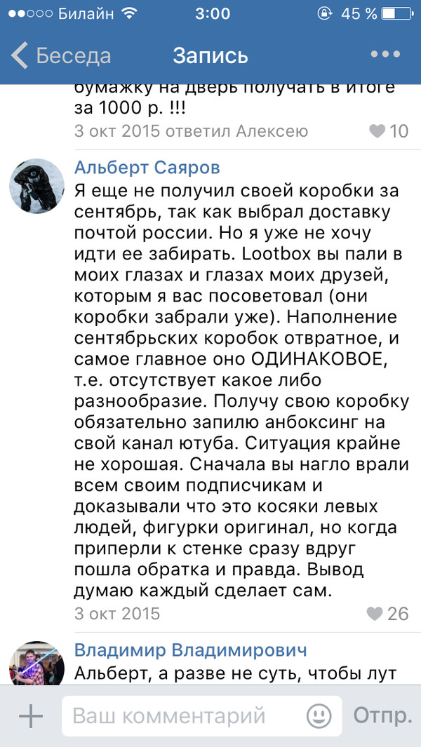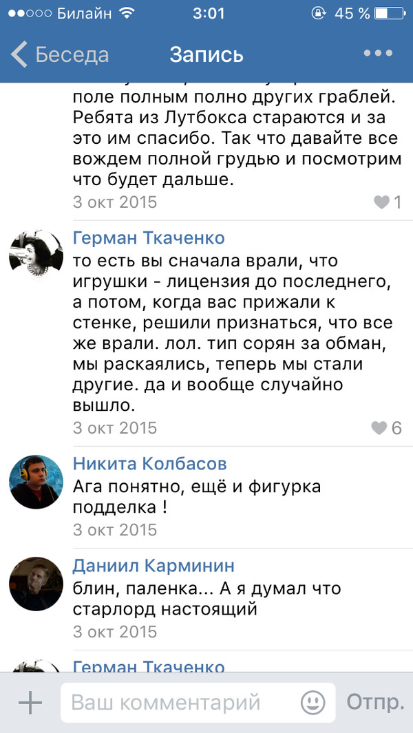 Давайте поговорим о сервисе, который называется Lootbox. Надеемся, что вы, ребята, там ничего не заказывали. А если и заказывали, то сами убедились в отвратительном наполнении их "чудесных" коробок. Этот сервис обычный "лохотрон", и, когда я вижу восторженные отзывы покупателей и сообщения а-ля: "Lootbox лучший, ни разу не пожалел(а) о покупке!" - мне становится очень обидно, ведь это совсем не так. Почему покупают они, а стыдно мне? Если вы состоите у них в сообществе, то наверняка замечали комментарии недовольных покупателей, а также замечали, что самые обоснованные из них быстро "исчезали". Так как это система "раз в месяц одна коробка", то разумно было бы предположить, что так оно и есть, но нет. Заказали в ноябре - получили в январе (в лучшем случае), но и тем, кому "долгожданный" бокс пришёл вовремя, не позавидуешь.