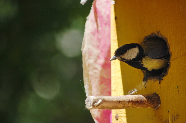 Это взрослая синица выглядывает наружу, можно ли вылетать, нет ли опасности.