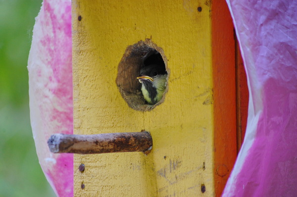 У меня дома на балконе висит скворечник, который мы сделали с дочерью. Уже третий год по весне в нем стабильно плодоносят синицы. Вот и в нынешнем мае в скворечнике появилось на свет новое потомство.