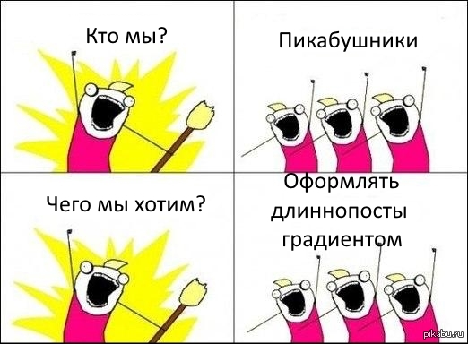 MrGradoz Пикабу в тренде 10 лет назад собственно ничего против не имею, просто наблюдение [моё] Пикабушники Тренд Градиент