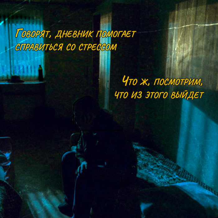 Усатый мужчина средних лет задумчиво хмыкнул, выпустил из уголка рта горький дым, тут же ещё раз крепко затянулся сигаретой и вновь уткнулся в толстую, дешёвую тетрадь, подсвечивая себе грязные, облитые какой-то жидкостью страницы телефонным фонариком.