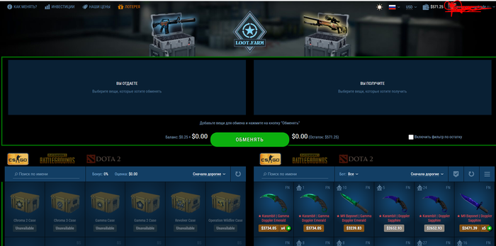 Я покупаю вещи на opskins.com и отдаю на обменник loot.farm