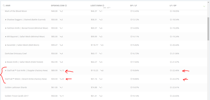 Цены проверяйте, т.к. opskins обновляет их в api раз в пол часа и иногда они дешевле, а иногда дороже. Вот пример в таблице была цена 27.36$, на самом деле 27.34$. Если вы торгуете очень дешевыми вещами это может играть большую разницу