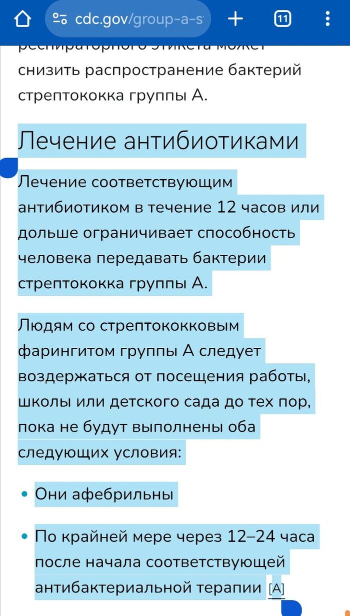 Когда ребёнок перестаёт быть заразным после начала антибиотикотерапии?
