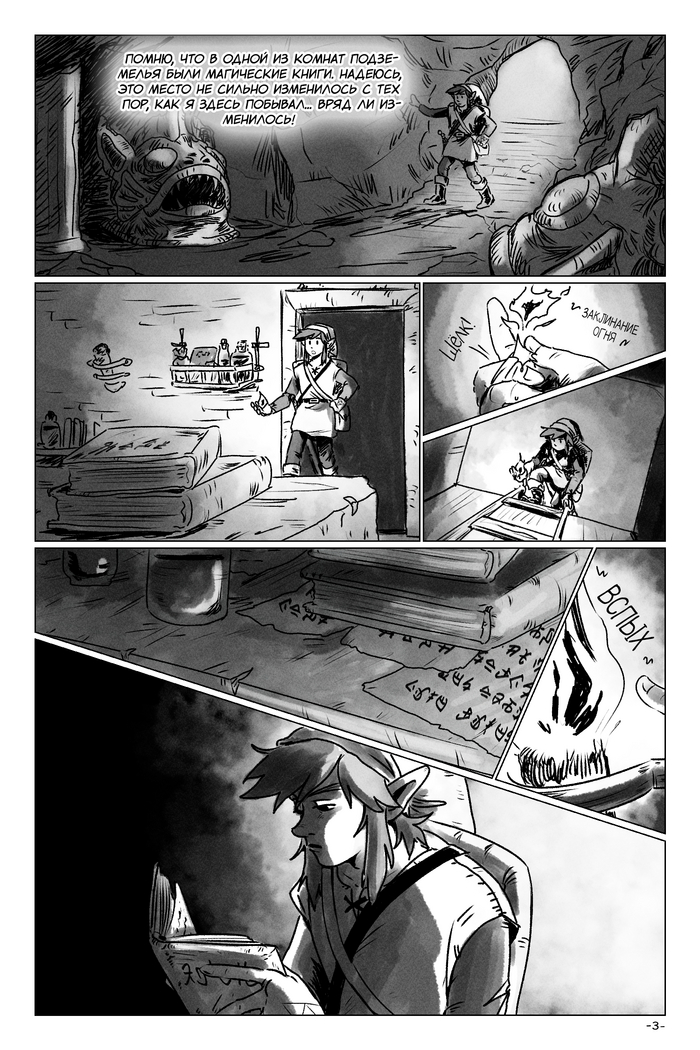 А мы сегодня с большим релизом, целую книгу презентуем! Да не простую книгу, а манга-игру и страницы вы будете в ней листать не по порядку, а в зависимости от того как Вы (в роли Линка) поступите в той или иной ситуации. И только богини Хайрула знают, куда Вас занесёт. И конец истории может поджидать вас за любым переворотом страницы.