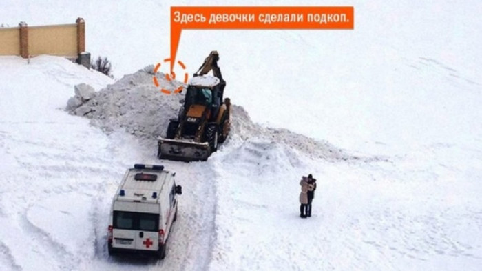 И вот, в тот момент, когда Иван Шарипов отлучился не надолго от снежной кучи к ней подбежали две девчушки десяти лет и стали в куче рыть пещеру.