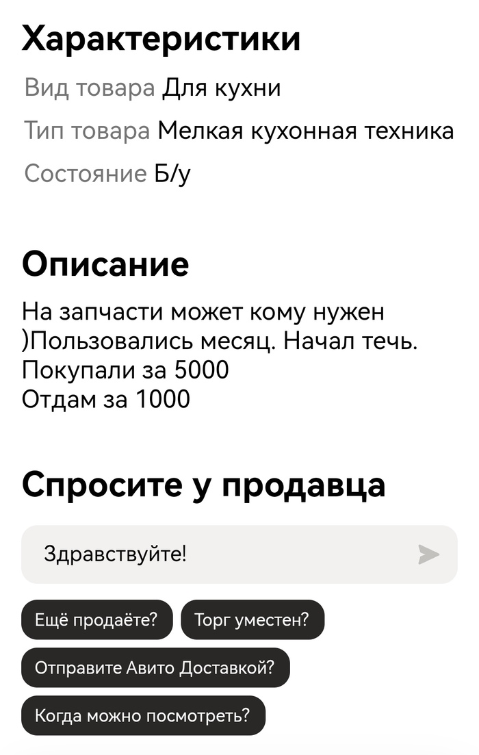Полезла на Авито, думаю, может у кого есть чайник с целыми окнами, а база, например, сломалась. И нашла с десяток объявлений о продаже таких чайников "на запчасти". У всех базы рабочие, а текут окна, одно или оба. Да, у этого чайника окон аж два штуки. Некоторым повезло ещё меньше - чайник "потёк" через месяц.