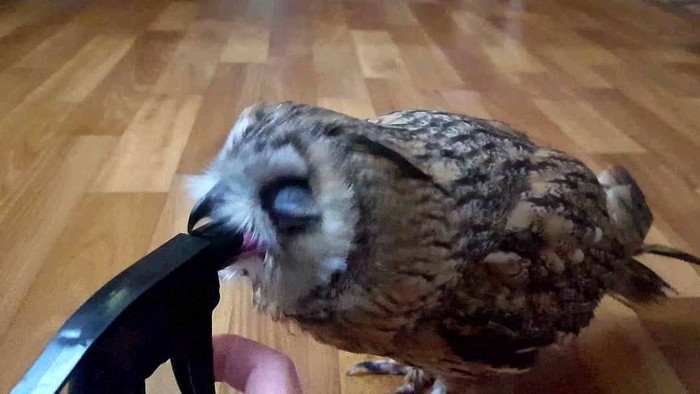 Кёрби любит играть,как кошки с верёвочкой,звуки которые он издает "Мяяя" общение и доверие. Головой сова крутит ,что лучше увидеть модель игрушки в пространстве из не подвижности глазных груш в склерах.