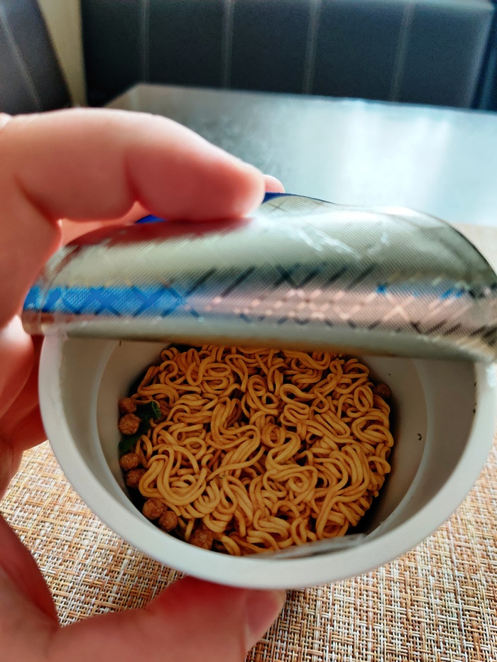 Ну а дальше действуем согласно инструкции на упаковке, высыпаем (выливаем) содержимое 2-х пакетиков в баночку и заливаем кипятком. Я обычно лью чуть больше обозначенного рекомендованного уровня (ну нравиться мне "бульон" из дошика) и не использую баффы, так как считаю, что если лапша по инструкции требует только кипяток из чайника - это уже самодостаточный продукт и я хочу его оценить именно так, как это было задумано производителем.