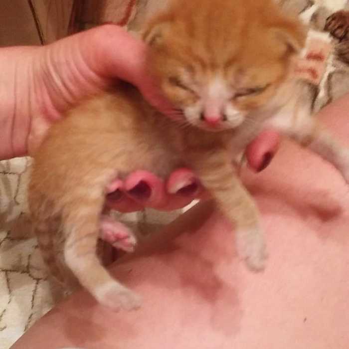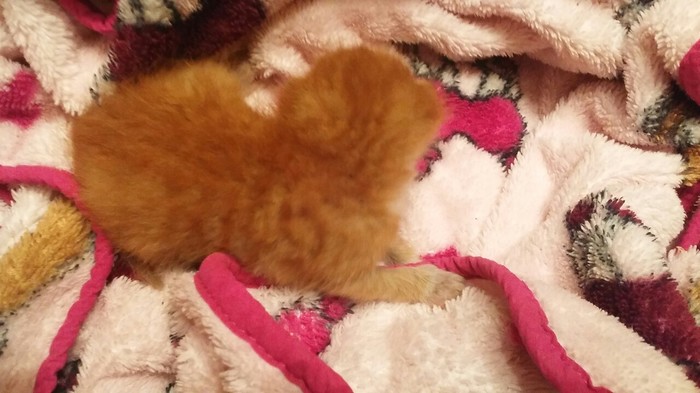 Дорбый вечер! Буду краток. Прощу помощи! Нашли котенка, примерно 3 недели отроду, девочка, на фото видно что рыжая. Сейчас находится у соседки. В данный момент глаза открылись, кушает через шприц. Соседка завтра уезжает, и следить не сможет за мелочью. У самих 2 собаки, которые агрессивно реагируют на неё, оставить не можем.