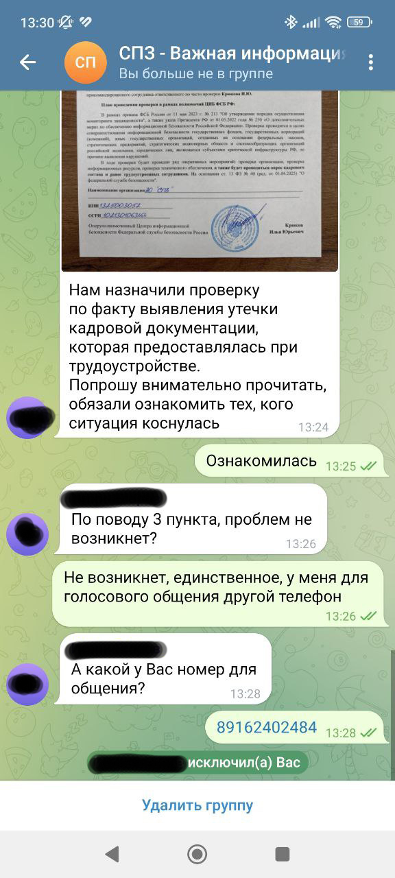 Вначале небольшая предыстория. В понедельник ничего не предвещало, сидим с супругой, работаем (удалёнщики). Ей приходит сообщение в телегу от шефа с бывшей работы по поводу утечки данных. Жена на эмоциях. А я вспомнил, что читал что-то подобное про мошенников на пикабу. Быстренько ещё раз поискали инфу - да, они. Послали их. Не додумались заскринить (эмоции). И что выдумаете, сегодня снова пишет уже её другой бывший шеф (там фигня с переводами). Слово в слово, даже фото документа прислали то же, только другая контора была указана. На сей раз скринили каждое сообщение. ФИО замазал, так как человек реальный (взломан).