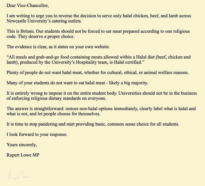 Например, в Ньюкасле ректор пакистанского происхождения полностью вычеркнула свинину из меню, оставив лишь халяльное мясо, и лишив студентов выбора.