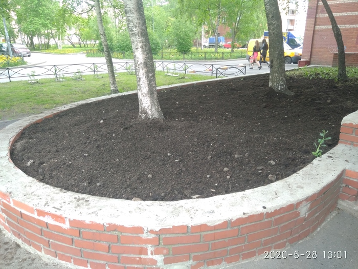 Теперь оставалось дело за землёй, что бы присыпать корни березки.