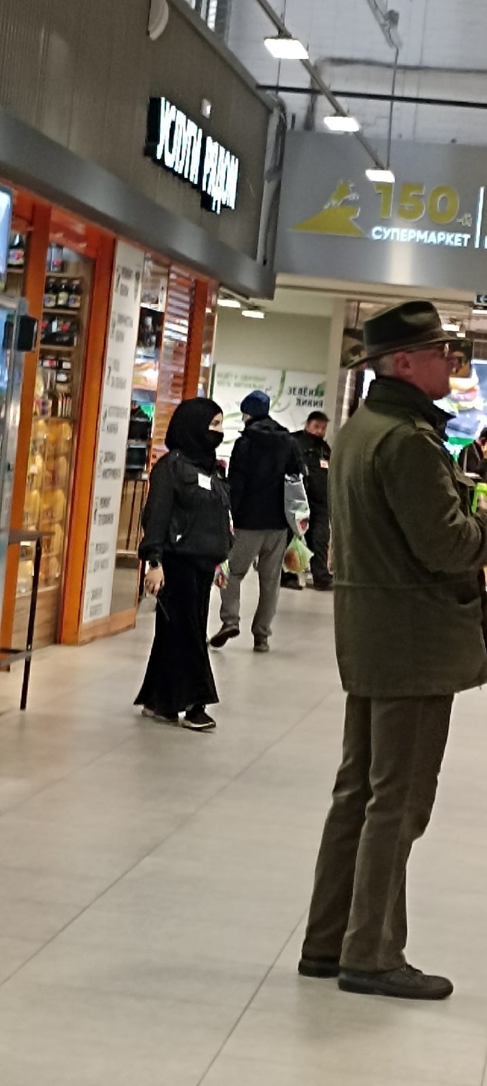 Мадам раздает свои ноготки на голову прохожим.