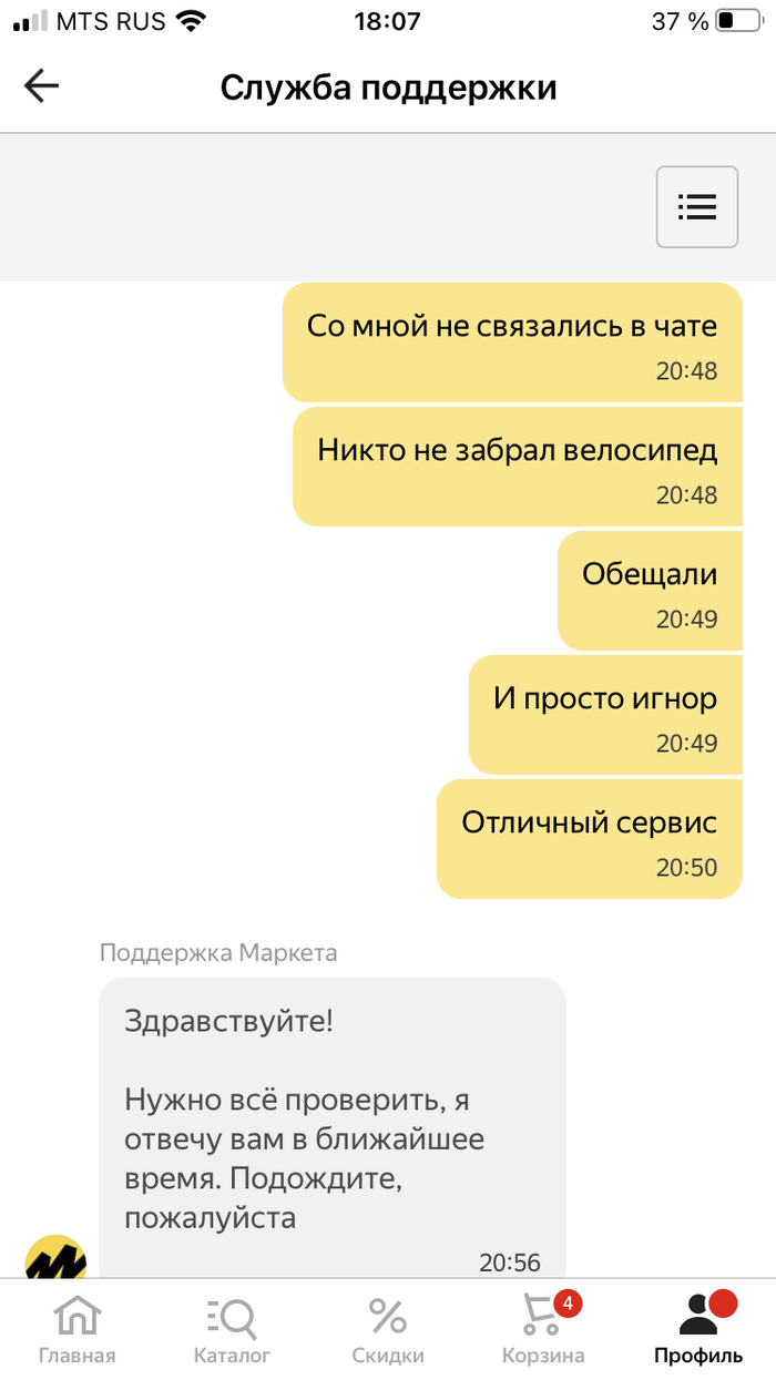 Итак, это продолжение истории о возврате велосипеда на Яндекс Маркете.