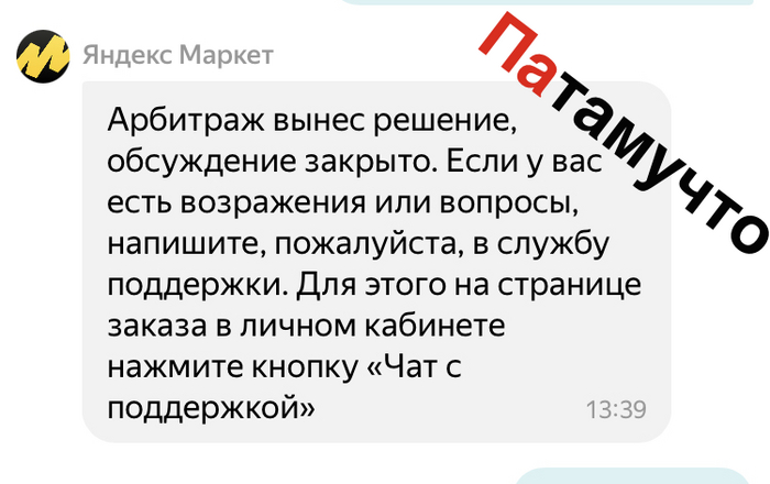 Каждый разговор с поддержкой Яндекса начинается с того, что виноват продавец, хотя я не коим образом не встаю на защиту продавца и призываю всех воздержаться от заказов у данного селлера. Однако, преимущественно, я думаю, что виноваты сервисы Яндекса.