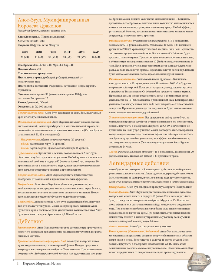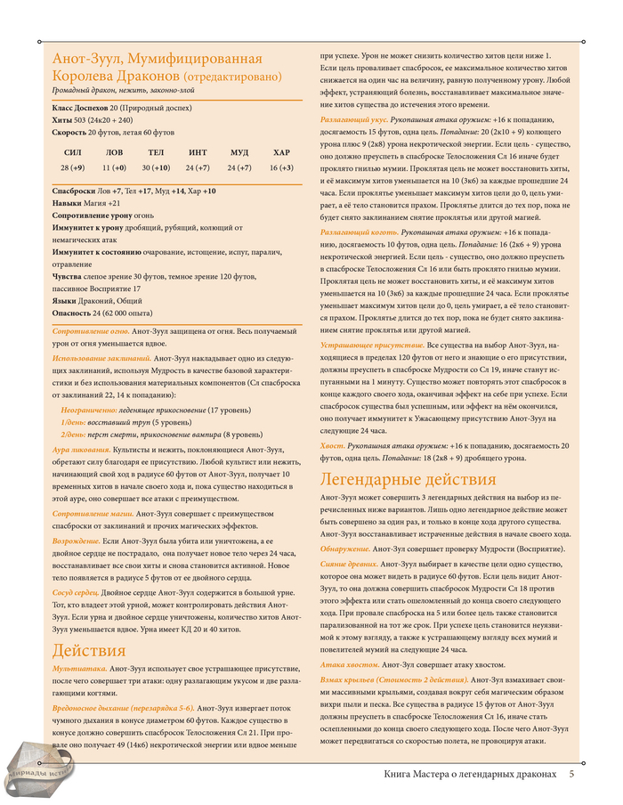 Приветствую. Вот и готов перевод первого дракона. Хочу сразу уточнить, что у автора были опечатки/недоработки в статблоке существа, но только у этого, с остальными драконами все хорошо. Мы публикуем оригинальный и отредактированный статблок (пересчитали некоторые цифры, согласно правилам Книги Мастера), так как, к сожалению, не удалось найти официальные правки из этой книги. Какой из них использовать - уже ваше право.