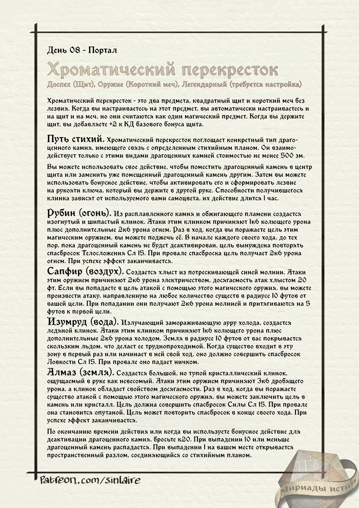 Хроматический перекресток. Это оружие крайне нестабильное, но может быть интересно разыграно. Использовать его не дешево, вполне вероятно его придется "заправить золотом" не раз, тем не менее оно обладает необычными эффектами.