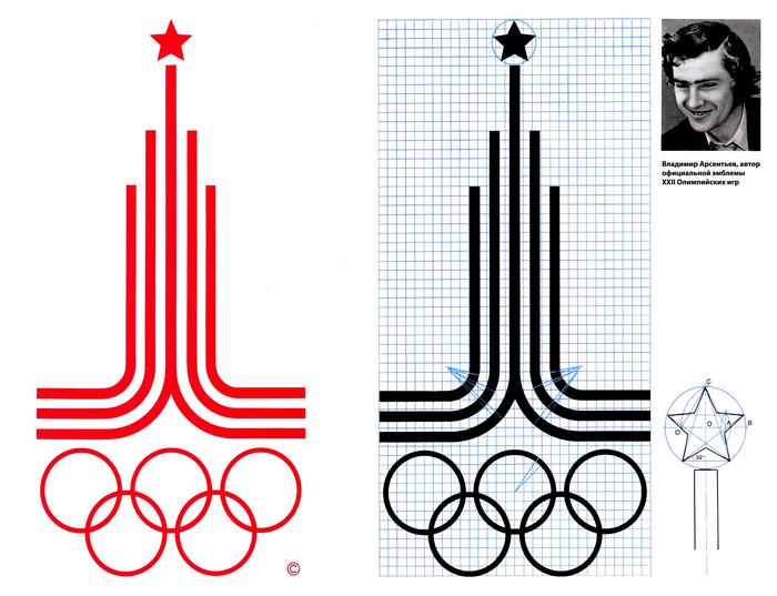 Автором всем хорошо знакомой официальной эмблемы Олимпиады-80 был тогдашний студент Строгановки Владимир Арсентьев.