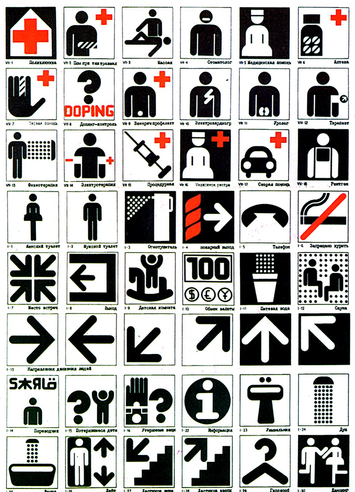 Эмблема и талисман Олимпиады-80 заняли центральное место в комплексе дизайнерского оформления столицы, но нужно было еще помочь приезжим ориентироваться в незнакомом городе. Поэтому всюду появились пиктограммы.
