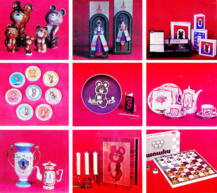 К Олимпиаде было изготовлено много сувенирной продукции с олимпийской символикой.